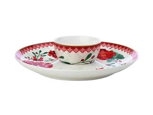 This Mistletoe chip & dip will bring some Christmas cheer to your table. Featuring a contemporary floral design in festive red, green and white, it’s ideal for serving dips, finger food and snacks. A party essential for any entertainer, it makes a stunning centrepiece for your Christmas spread. Beautifully gift-boxed, it’s also a lovely present to put under the tree.